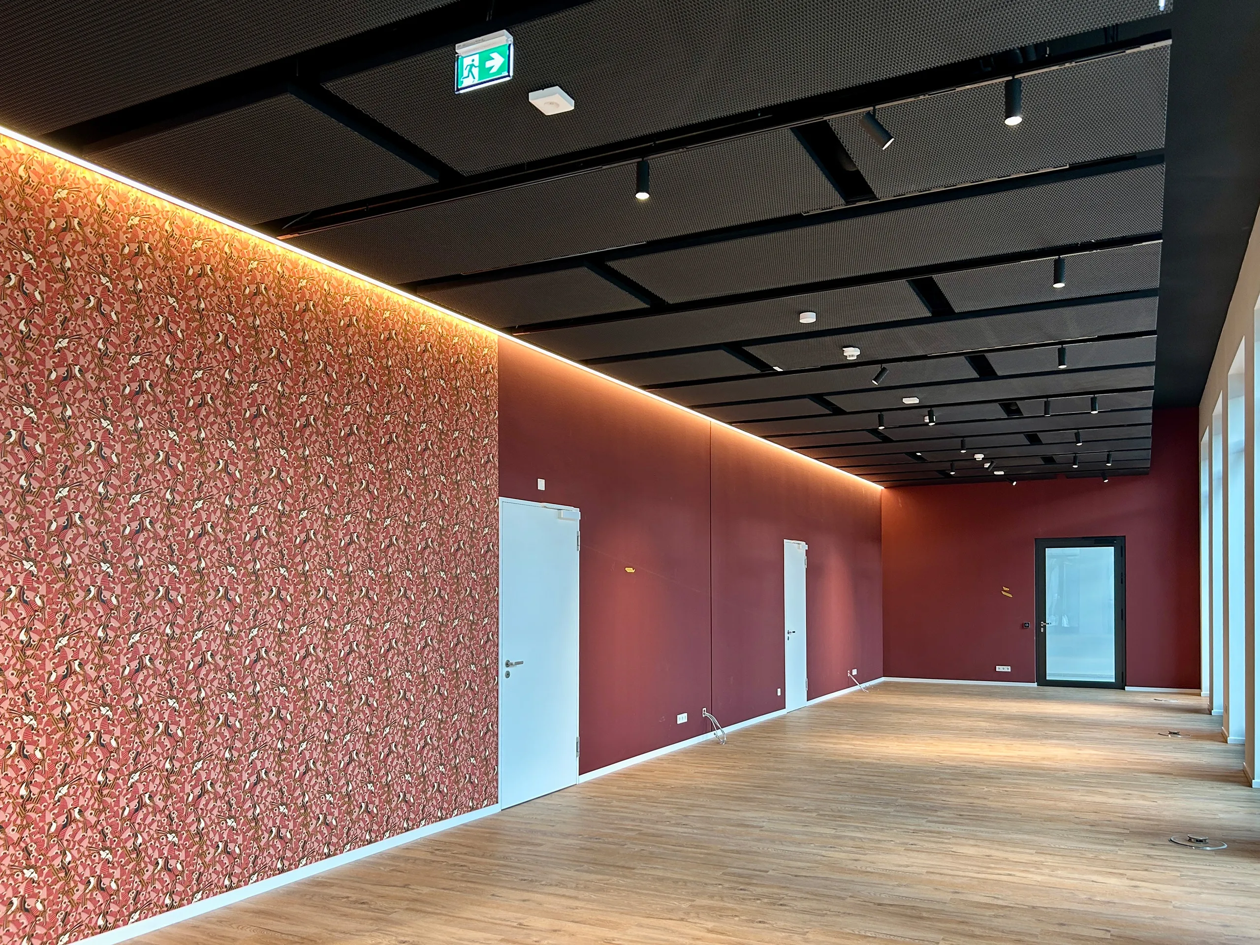Dank der Ausstattung aller Räume mit Deckensegeln mit integrierter Beleuchtung besteht unabhängig von Raumgröße und Anzahl der Personen jederzeit eine angenehme Raumakustik.