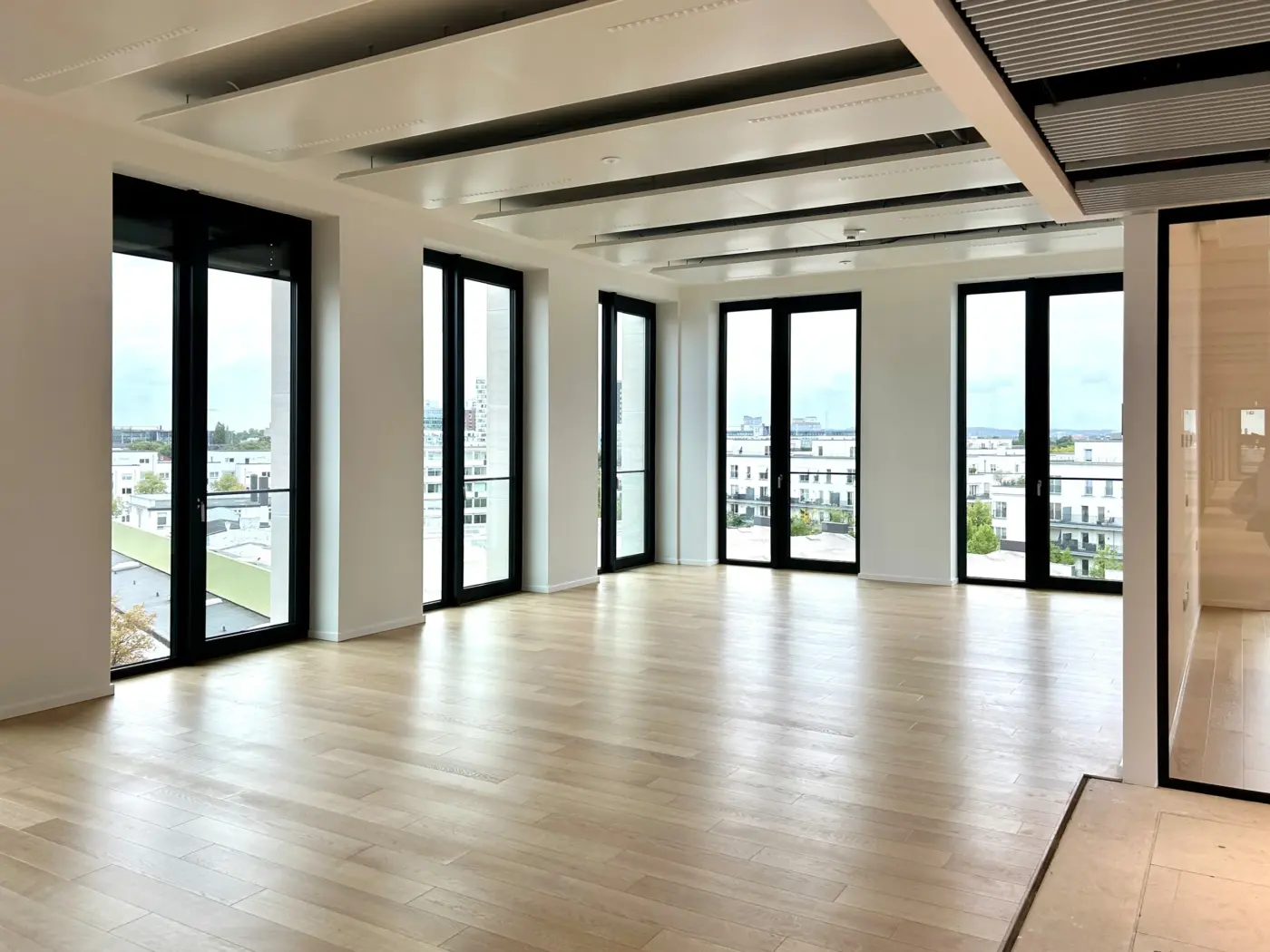 Ob Open-Space-Bereiche, Einzelbüros oder Besprechungsräume – die Raumaufteilung kann nach den Wünschen des Mieters individuell angepasst werden.